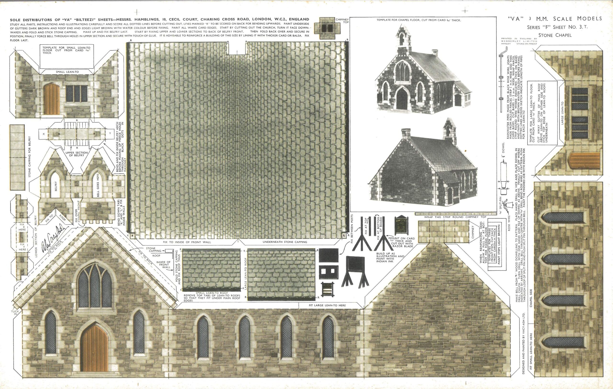 BILTEEZI 3mm/TT Stone Chapel Building Kit Sheets No. F3