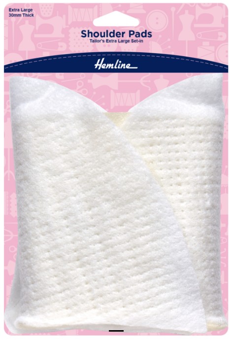 Constructed from a foam centre with a needle punch wadding surround. This large, thick, soft set-in shoulder pad is suitable for any jacket to create a more formal wear look. White, 1 pair: 30mm thick.