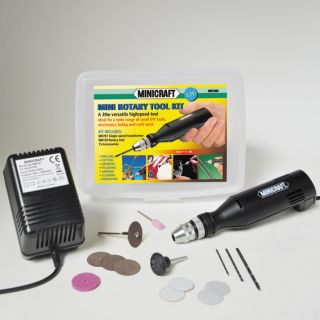 HOBBY DRILL KIT an excellent starter set suitable for a wide range of hobby, craft and D.I.Y. applications. The kit features the MB150 High Torque Drill with modern pencil grip design, and the MB714 Plug-in Transformer. It is supplied with 20 assorted accessories for drilling, grinding, shaping and smoothing etc. Chuck capacity 0.4 – 3.2mm. Supplied in a good quality storage case.