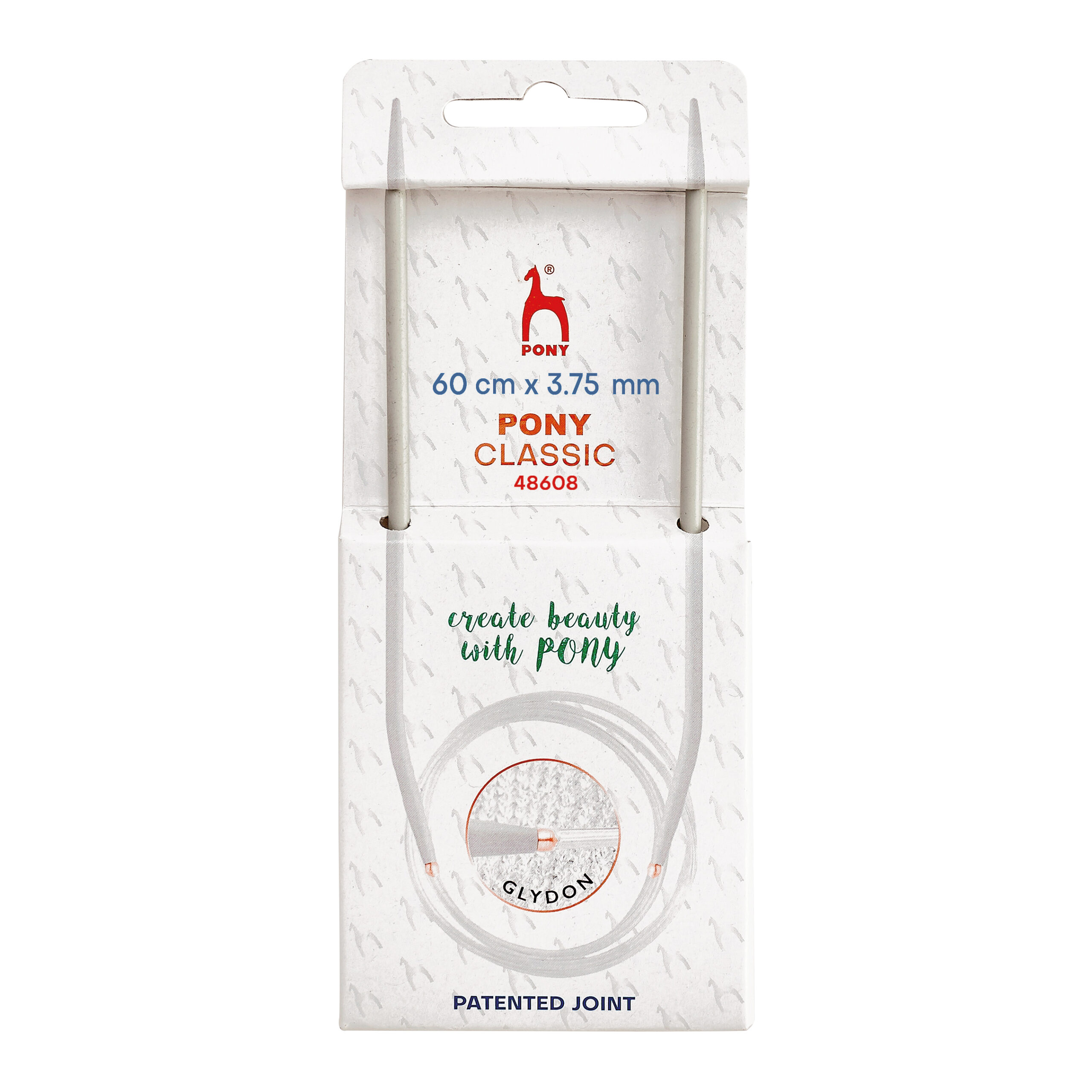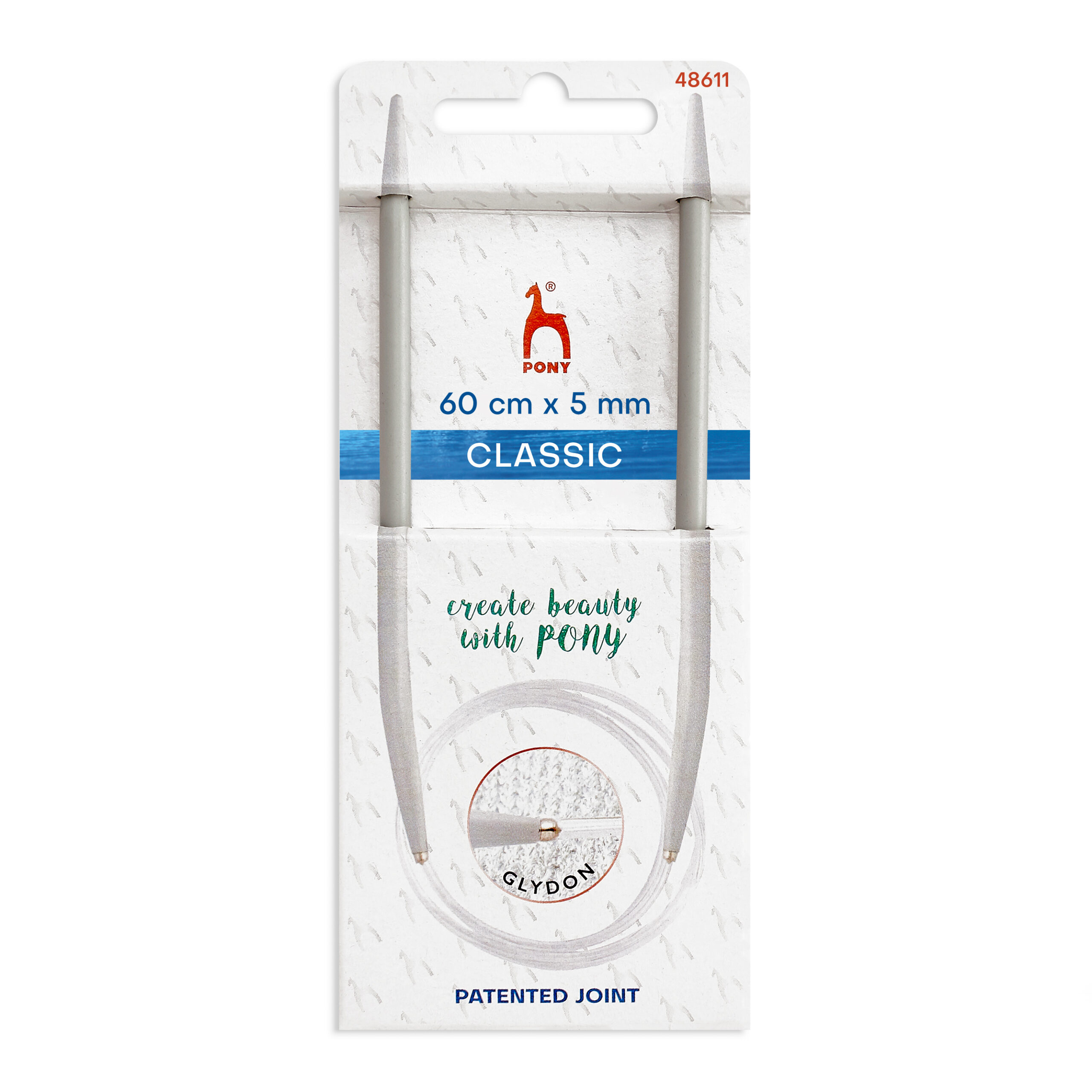Manufactured from solid aluminium and anodized to increase hardness and resist corrosion. Used to produce seamless garments without stress on hands and wrists. The attached cable carries the bulk of the weight.
