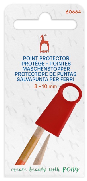 Jumbo sized knitting pin point protector. Handy silicon cap to cover the pins hence neatly hold circulars or sets of pins when you are not knitting preventing stitches from slipping off the pins. Available in red, with a round loop for easy storage.